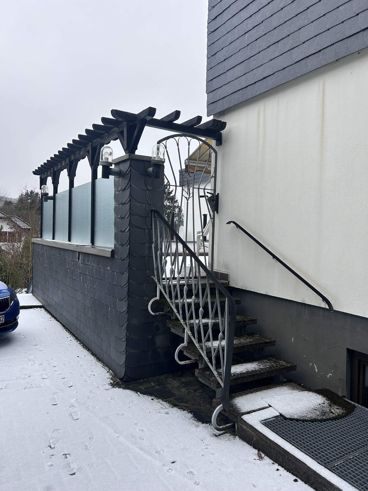 Der Zugang zum Balkon/Loggia erfolgt über den Bereich im Obergeschoss . Der Zugang zur Terrasse befindet sich im Erdgeschoss.